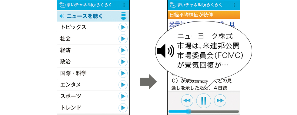 ラジオのような感覚でニュースを聞くことができます。画面を見る必要がないので、ほかのことをしながらでも旬の情報をキャッチできます。
