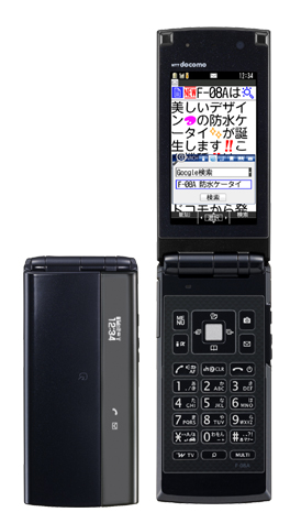 F-08Aを開閉すると、各カラーごとに異なる背面アニメーションとヒカリデザインが連動。ケータイを美しく彩ります。