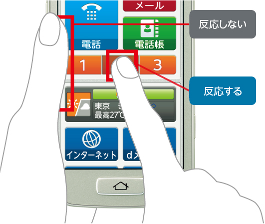 本体を握る手や指が画面の端にかかってしまっても誤動作してしまうことはありません。スマートフォンをしっかり握りながらあんしんして操作することができます。