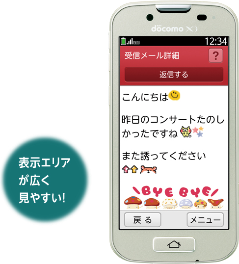 らくらくスマートフォンで、気持ちが伝わるスタンプ・絵文字を使って、ご家族やお友達とのコミュニケーションをお楽しみください。