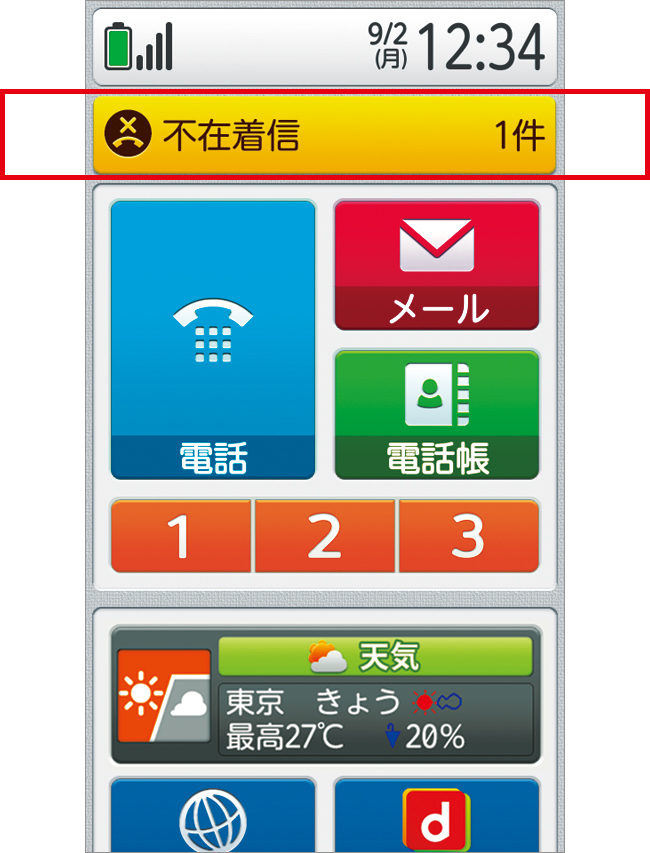 大規模な災害時にらくらくスマートフォン2で安否確認ができる災害用伝言板に対応。震度6弱以上の地震などの大規模な災害が発生した場合に安否情報の登録や確認ができます。