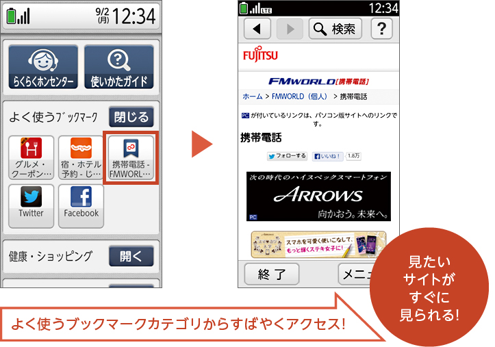 よく使うブックマークカテゴリからすばやくアクセス! ⇒ 見たいサイトがすぐに見られる!