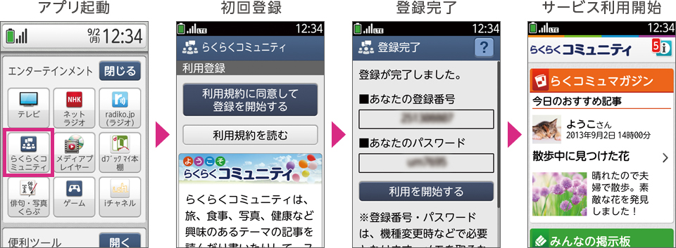 らくらくコミュニティアプリを内蔵。複雑な登録作業なしで、すぐに利用することができます。