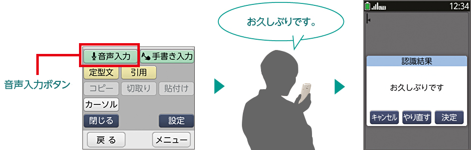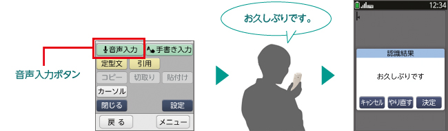 メールなどの文章を音声で入力することができます。口頭でメール作成が行えるので便利です。