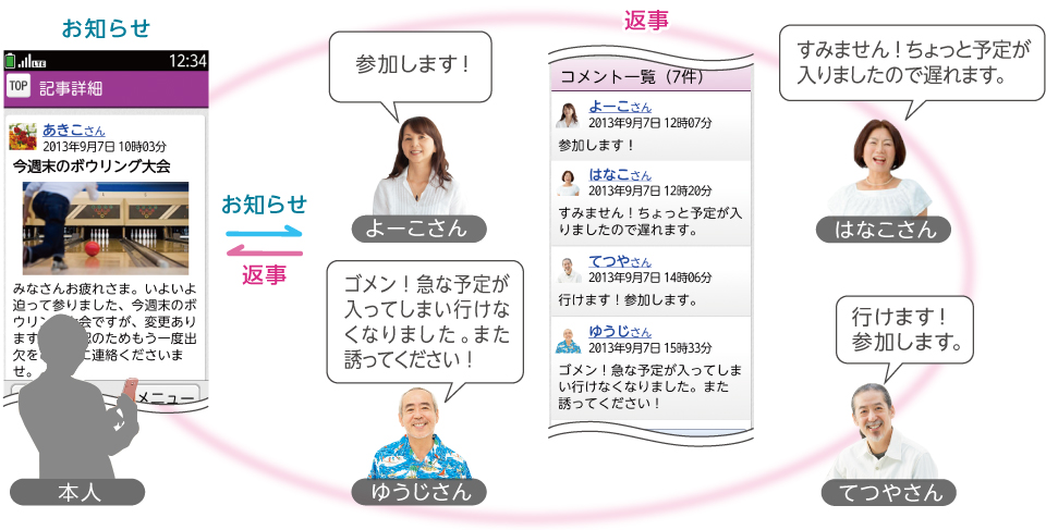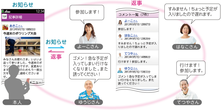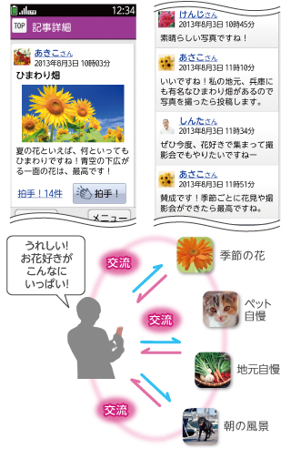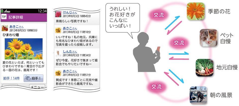 自分が関心あることや、趣味、今日の出来事などについて投稿すると、それを読んだ人がコメントを書いてくれるなど、たくさんの人と新しいコミュニケーションが楽しめます。