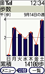 「歩数」「歩いた距離」が表示できる歩数計を搭載しました。また、特定の相手のメールアドレスを登録しておけば、1日の歩数記録が自動で相手にメール送信されるので、ご家族の方もあんしんです。
