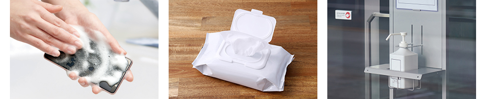 さらに、アルコール除菌シートでの拭き取りやプッシュタイプ液剤の噴霧により、本端末の消毒や一定量のウイルス除去ができます。注3