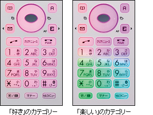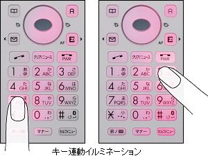 発着信時や、メール送受信時、オープン時、アラーム時など、多彩なシーンを美しく彩るレインボーキーイルミ。6つのテーマ設定のほか、36パターンの中から好きな光り方を機能ごとに設定可能です。
