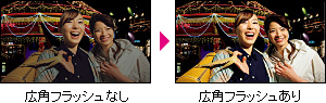 フラッシュは広角対応高輝度LEDを採用。距離約1mの広範囲を明るく照らすことができ、うす暗いシーンに有効です。