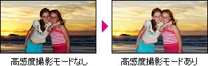 最大ISO25600相当の高感度撮影モードを搭載。室内や夕景・夜景など、光量の少ないシーンでも、高感度の撮影でブレずに明るい写真が撮影できます。ノイズリダクション処理で、ザラツキ感も極力抑えました。