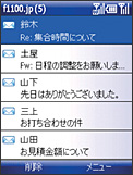 会社のメールやプライベートで使っているメールをWindows® ケータイ F1100で送受信できます(注11)。mopera Uを利用した場合は、メールの自動受信にも対応。iモードメール(注12)受信と同様にインターネットメールの自動受信が行えます。