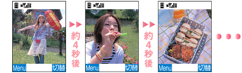 | たくさん保存してある写真をフォルダ単位でスライドして次々と自動表示さることができます。 次の画像を表示させるのにボタン操作を必要としません。 |