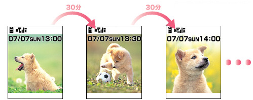 | 撮影した写真を30分もしくは60分おきにランダムに表示。 表示させたい写真はフォルダ単位で設定できるので、自慢のアルバムを待受画面にして手軽に楽しめます。 |