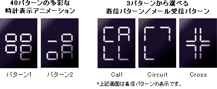 何もないケータイの表面から、くっきりと浮かび上がるフローティングサイン。そのホワイトLEDの美しさはもはや、単に情報を表示させるだけの機能ではなく、ひとつのデザイン。時計表示から、新着情報の有無、さらには時報や、電池・電波状況まで。さまざまな情報を楽しみながらチェックできます。また、F703iを開閉するたびに点灯するので、多彩な表情をいつでも楽しめます。