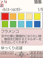 多彩なイルミネーションカラーを楽しんでもらえるよう、50種類のフローティングイルミをご用意。カラーの効果は、カラーセラピストの第一人者である泉智子先生が伝授。いままでのケータイにはない、新しいカラー選びが楽しめます。