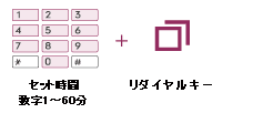 セット時間数字(1〜60分)+リダイヤルキーでタイマーセット!