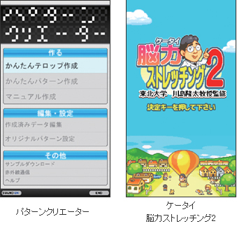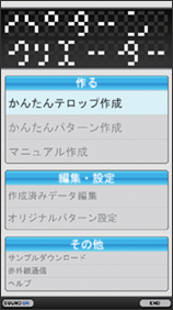 37個のLED点灯パターンを自分で作れるiアプリ「パターンクリエーター」をプリインストールしました。手軽に作れる「かんたんテロップ作成」「かんたんパターン作成」と、凝ったパターンを作れる「マニュアル作成」の3メニューをご用意。自分だけのオリジナルパターンを楽しめます。