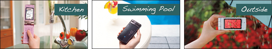 - キッチンでお料理中、濡れている手でケータイを操作したり、少々の水はねがあっても大丈夫。