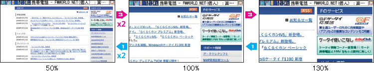 ダイヤルキーによるワンタッチの簡単操作で、フルブラウザ利用中の拡大縮小表示も思いのまま(1キー:縮小、3キー:拡大)。5段階のスムーズな拡縮で、PC向けサイトの小さな文字もしっかり読めます。