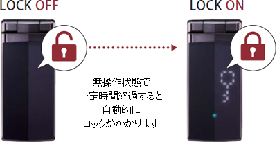 安心のオートキーロック機能でケータイを置いたまま席をたっても大丈夫