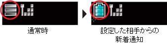 プライバシーモード対象者からの新着通知は、あらかじめ設定した電池アイコンの表示切替によりお知らせ。プライバシーを守りながら、自分だけにわかるサインで特別な人からの着信の見逃しを防げます。