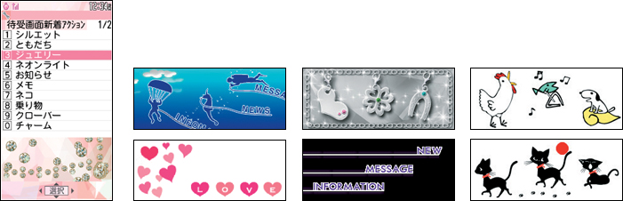 電話やメールの新着通知を、楽しいアニメーションでお知らせする新着アニメを16パターンご用意。さらに、指定した相手からの新着回数が一定以上になると、スペシャルな新着アニメが登場するステキな仕掛けを新たに搭載しました。