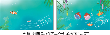 充電中に楽しめるプリインFlashコンテンツを設定すれば、ビューアスタイルで卓上時計のように活用できます。さらに、季節や時間によって変化するアニメーションで、充電中にも飽きることがありません。また、お気に入りの写真や静止画を充電中専用画像としてスライドショーで楽しむことも可能です。
