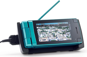 卓上ホルダ F26を使用すると、見やすいスタイルでのワンセグ視聴が可能です(注6)