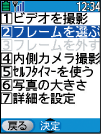 撮影画面では、現在の撮影モードやズームの状態などを大きな文字で表示。カメラ機能も「フレームを選ぶ」など、わかりやすい文章で表示しました。豊富なカメラ機能を思いのままに楽しめます。