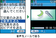 伝えたいことを、文章の代わりに録音した音声でメールすることができます。手が離せないときなどでも手軽にすばやくメールを相手に送ることができるので、とても便利です。