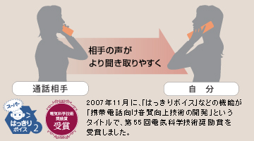 周囲の騒音を感知すると、相手の声を音域ごとに最適な音量に細かく調整する「スーパーはっきりボイス2」を採用。これまで以上に、自然な聞こえ方になるように改良しました。
