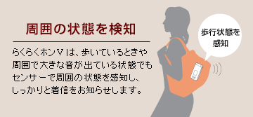 周囲の状態に合わせて自動的に着信音量がアップします。さらに、着信が一定時間続くとバイブレータがONになり、でか着信音へと切り替わります。さまざまな状態で、しっかりと着信をお知らせします。