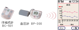 株式会社タニタが運営するiモードサイト「TANITAからだカルテ(注4)」とも連携。健康レシピなどの各種サービスを受けたり、らくらくホンVで測定したデータを記録することができます。 注4:無料サービス(2008年7月現在)。詳細については、iモードサイト「TANITAからだカルテ」をご確認ください。