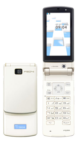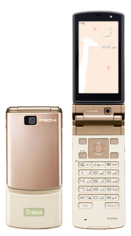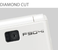 ケータイ右上で主張する「F904i」という端末名は、ダイヤモンドカットでエレガントに表現。光を帯びて上質に輝きます。