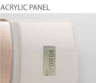 ケータイの表面下部には深い光沢感と透明感を併せ持つアクリルパネルを採用。ケータイの質感をより上質に仕上げました。