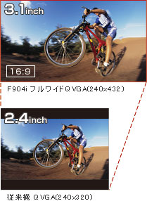 約3.1インチの16:9フルワイドQVGA液晶搭載