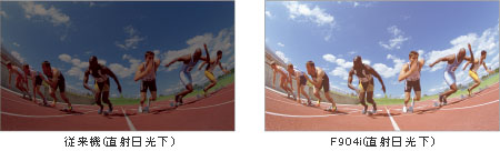 F904iは、904iシリーズの中で唯一のワンセグケータイ。最大5時間の連続視聴が可能なうえ、場所に合わせて画面を最適な明るさにしてくれる明るさ自動調整や、机などに置いて楽しめる2段階の角度調節、便利なマイク付リモコンなど、よりワンセグが楽しめるような工夫を散りばめました。