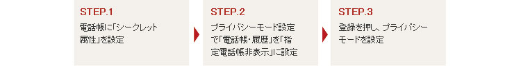 電話帳データのシークレット属性の変更や電話帳データを編集したあとにシークレット反映をしなかった場合、プライバシーモードを起動しても、変更や編集した電話帳データのメールやSMSは非表示になりません。非表示にするにはシークレット反映を実行してください。