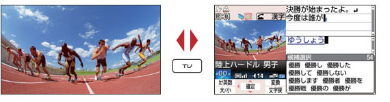ワンセグが起動中でも、さまざまな他の機能を同時に活用できるマルチウインドウを採用しました。テレビを観ながら、メールの受信・閲覧・返信ができたり、スケジュールを確認できたりと、さまざまな機能+ワンセグといった「ながら操作」が可能です。マルチウインドウ画面からワンセグ全画面表示への切り替えもワンタッチで行えるうえ、ワンセグ中に電話やメールが来た場合は、自動でマルチウインドウ画面に切り替わるので便利です。