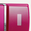 ホワイト、マゼンタには、サブ液晶周囲の二色成形と、角度によってキラキラと輝くラメを採用しました。さり気なさのなかに、ゴージャスな雰囲気を演出します。