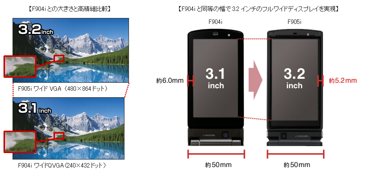 Word、Excel、PowerPointといったビジネス書類もF905iなら3.2インチの高精細大画面で閲覧可能。情報量がより多く表示できるようになったうえ、細部のデータ情報も鮮やかに表示します。また、拡大・縮小がスムーズに行えるなど、その使いやすさはPCクラス。場所を選ばずビジネス書類をラクに確認できます。