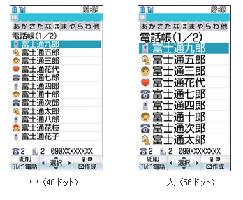 文字サイズの変更が可能な項目は「iモード」「フルブラウザ」「メール閲覧」「メール編集/文字入力」「電話帳/履歴」の計5項目。最大で6段階の文字サイズの中から、スタイルに合わせて選択できます。