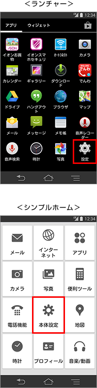 2. 「設定」(シンプルホームは「本体設定」)をタップします。
