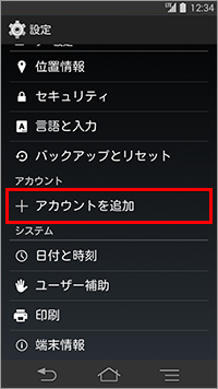 3. 「アカウント」の「アカウントを追加」をタップします。