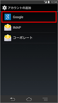 4. 「アカウントの追加」が表示されたら、一覧から「Google」をタップします。