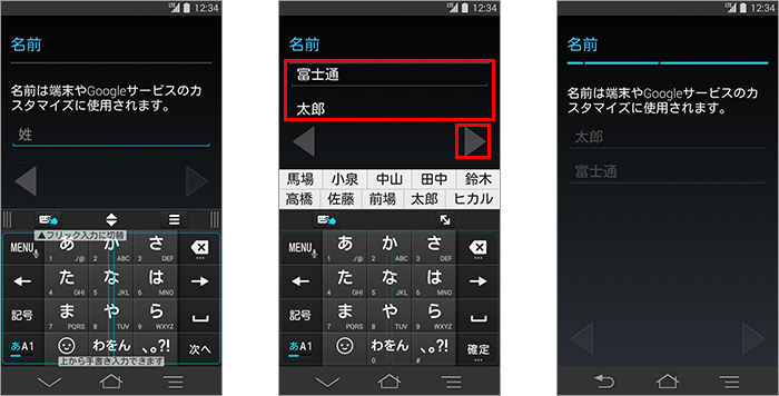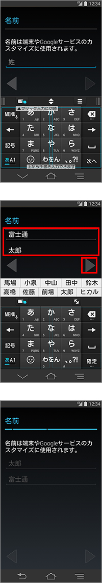 6. 「名前」が表示されたら、「姓」と「名」をそれぞれの項目に入力し、「
