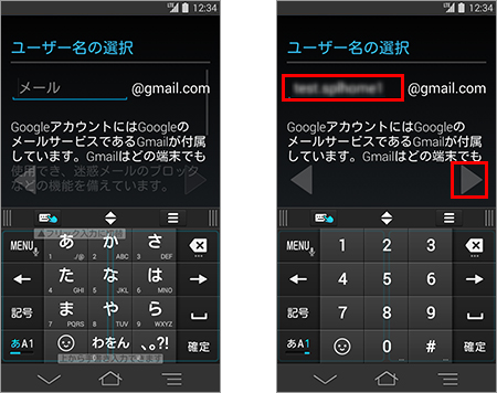 7. 「ユーザー名の選択」が表示されたら、設定したいGmailアドレスを入力し、「