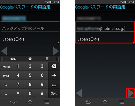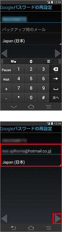 11. 電話番号が自動入力されたら、「バックアップ用のメール」にここで登録したメールアドレスとは別のアドレスを入力し、国名を選択してから「