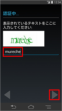 15. 「認証中…」が表示されたら、白ボックス内に歪んで表示されている文字を入力し、「