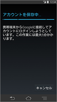 14. 「アカウントを保存中…」が表示されたら、しばらく待ちます。